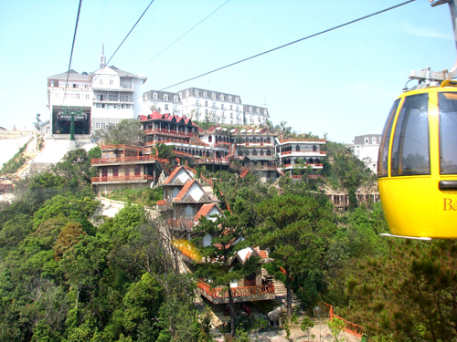 Xe dừng bánh tại ga Suối Mơ và quý khách sẽ làm thủ tục lên các Cabin chuẩn bị cho chuyền hành trình du ngoạn trên cáp treo Bà Nà đã thiết lập 2 kỷ lụccấp treo 1 dây dài nhất thế giới và chênh lệch độc cao giữa hai ga lơn nhất thế giới trong vòng 20 phút. Dừng chân ở ga 3 khu du lịch Bà Nà Hills quý du khách sẽ được HDV dẫn đi tham quan các điểm như Chùa Linh ỨngĐồi vọng Nguyệt, khu vực vườn hoa tham gia các trò chơi trong khu vui chơi giải trí hiện đại bậc nhất Việt Nam là Fantasy Park chơi 105 trò chơi miễn phí